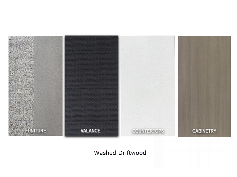 Sleeps 5 Slides 2 Length 33 ft 11 in Ext Width 8 ft 1 in Ext Height 11 ft 3 in Int Height 6 ft 9 in Interior Color Washed Driftwood Hitch Weight 985 lbs GVWR 8995 lbs Dry Weight 7350 lbs Cargo Capacity 1645 lbs Fresh Water Capacity 45 gals Grey Water Capacity 58 gals Black Water Capacity 29 gals Tire Size ST225/75R15E Furnace BTU 30000 btu Available Beds King Refrigerator Type 12 Volt Refrigerator Size 10 cu ft Cooktop Burners 3 Number of Awnings 2 LP Tank Capacity 30 lbs Water Heater Capacity 6 gal Water Heater Type Gas/Electric AC BTU 15000 btu TV Info LR Smart HDTV Awning Info 10' & 11' 6" Power with LED Lighting Axle Count 2 Washer/Dryer Available Yes Number of LP Tanks 2 Shower Type Standard Electrical Service 50 amp Solar Wattage 200 watts Similar Floorplans
